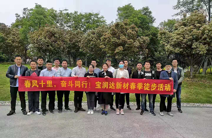 為提升團(tuán)隊(duì)活力和凝聚力,為第2季度業(yè)績(jī)目標(biāo)達(dá)成鼓舞士氣,4月22日,寶潤(rùn)達(dá)新材開(kāi)展了里程30公里的春季徒步活動(dòng),來(lái)自國(guó)際貿(mào)易部、國(guó)內(nèi)貿(mào)易部、設(shè)計(jì)部、采購(gòu)部、人資行政部、財(cái)務(wù)部、市場(chǎng)部等各部門同事參加了這次活動(dòng)。